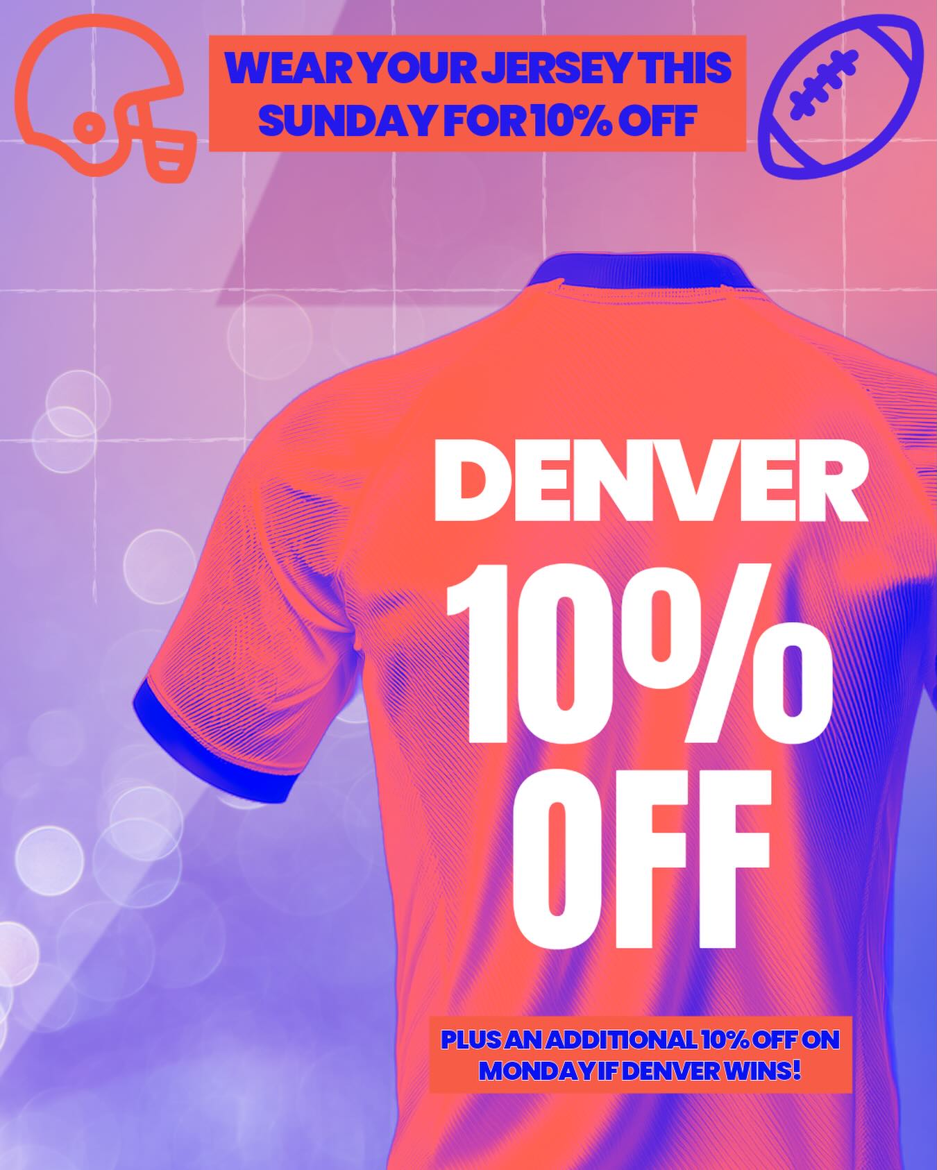AND if (when?) the Broncos win, get ADDITIONAL DEALS four your order on Monday 1/26 if you show up in your jersey again!